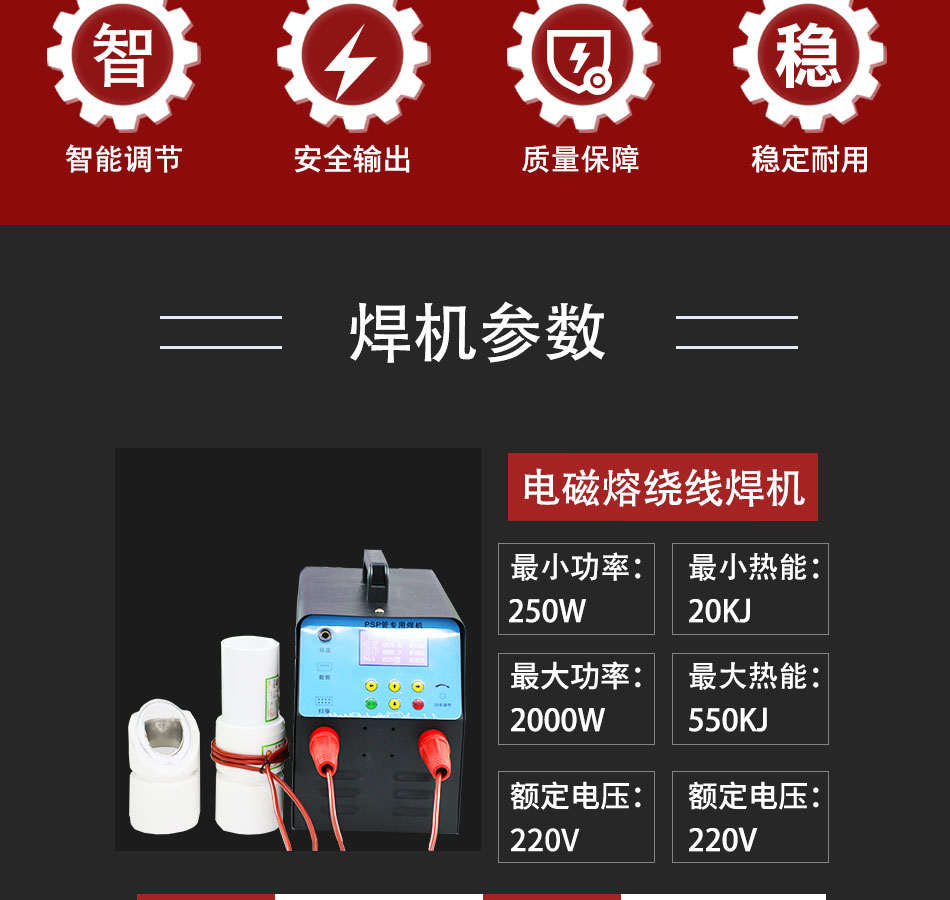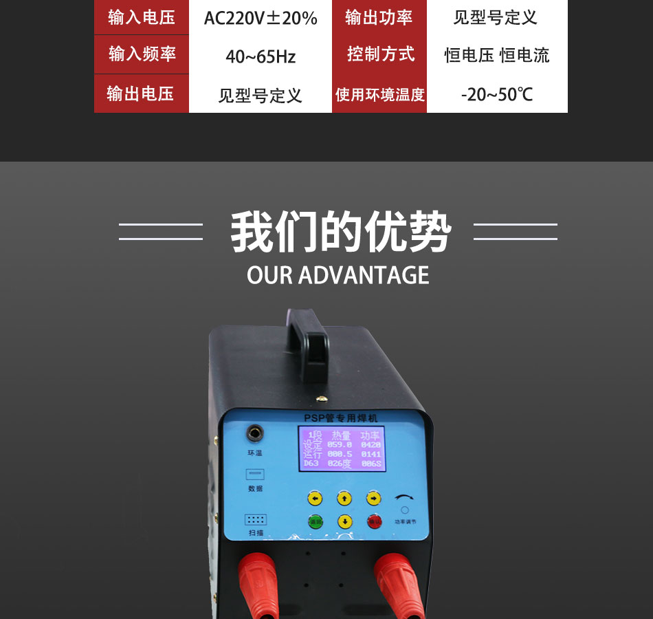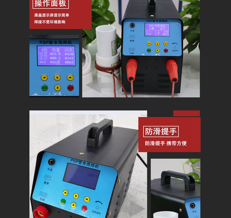 | 產品介紹:電磁熔焊機又名“PSP電磁雙熱熔智能焊機”,是一種專門用于PSP鋼塑復合壓力管焊接使用的設備,它主要是通過焊機內部的智能面板控制系統配合相應的電磁夾具接頭,通過電流以轉圈方式流動時產生的磁場感應發熱,使管子中間層的鋼帶收到磁場感應而發熱,從而將內外層的塑料融合在一起,PSP電磁雙熱熔智能焊機具有高效率、輕施工、易操作等特點,不管是從施工現場的便捷性,以及后期的產品售后維保上來說,都是比較優越的。 |