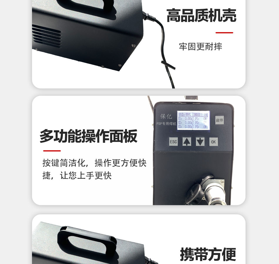 產(chǎn)品介紹:電磁熔焊機又名“PSP電磁雙熱熔智能焊機”,是一種專門用于PSP鋼塑復(fù)合壓力管焊接使用的設(shè)備,它主要是通過焊機內(nèi)部的智能面板控制系統(tǒng)配合相應(yīng)的電磁夾具接頭,通過電流以轉(zhuǎn)圈方式流動時產(chǎn)生的磁場感應(yīng)發(fā)熱,使管子中間層的鋼帶收到磁場感應(yīng)而發(fā)熱,從而將內(nèi)外層的塑料融合在一起,PSP電磁雙熱熔智能焊機具有高效率、輕施工、易操作等特點,不管是從施工現(xiàn)場的便捷性,以及后期的產(chǎn)品售后維保上來說,都是比較優(yōu)越的。