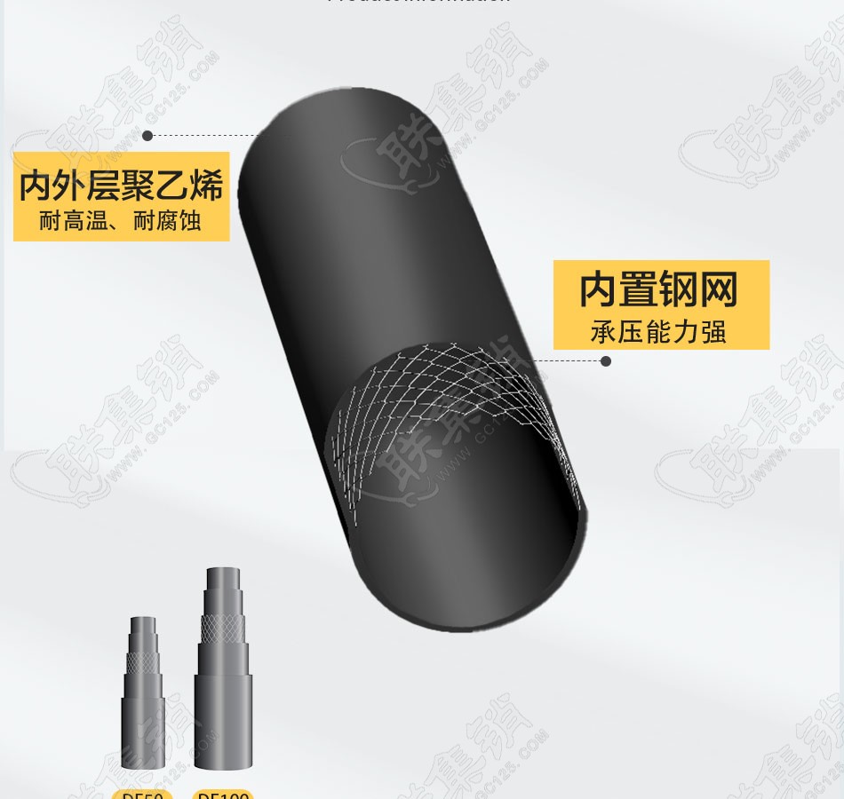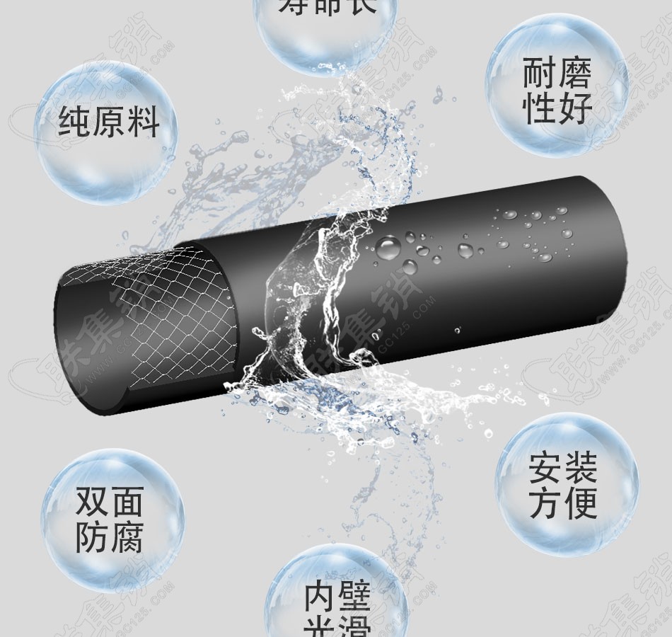 產(chǎn)品介紹:鋼絲網(wǎng)骨架塑料復(fù)合管是一款改良過的新型的鋼骨架塑料復(fù)合管。這種管材又稱為srtp管。這種新型管道是用高強度過塑鋼絲網(wǎng)骨架和熱塑性塑料聚乙烯為原材料,鋼絲纏繞網(wǎng)作為聚乙烯塑料管的骨架增強體,以高密度聚乙烯(HDPE)為基體,采用高性能的HDPE改性粘結(jié)樹脂將鋼絲骨架與內(nèi)、外層高密度聚乙烯緊密地連接在一起,使之具有優(yōu)良的復(fù)合效果。因為有了高強度鋼絲增強體被包覆在連續(xù)熱塑性塑料之中,因此這種復(fù)合管克服了鋼管和塑料管各自的缺點,而又保持了鋼管和塑料管各自的優(yōu)點。